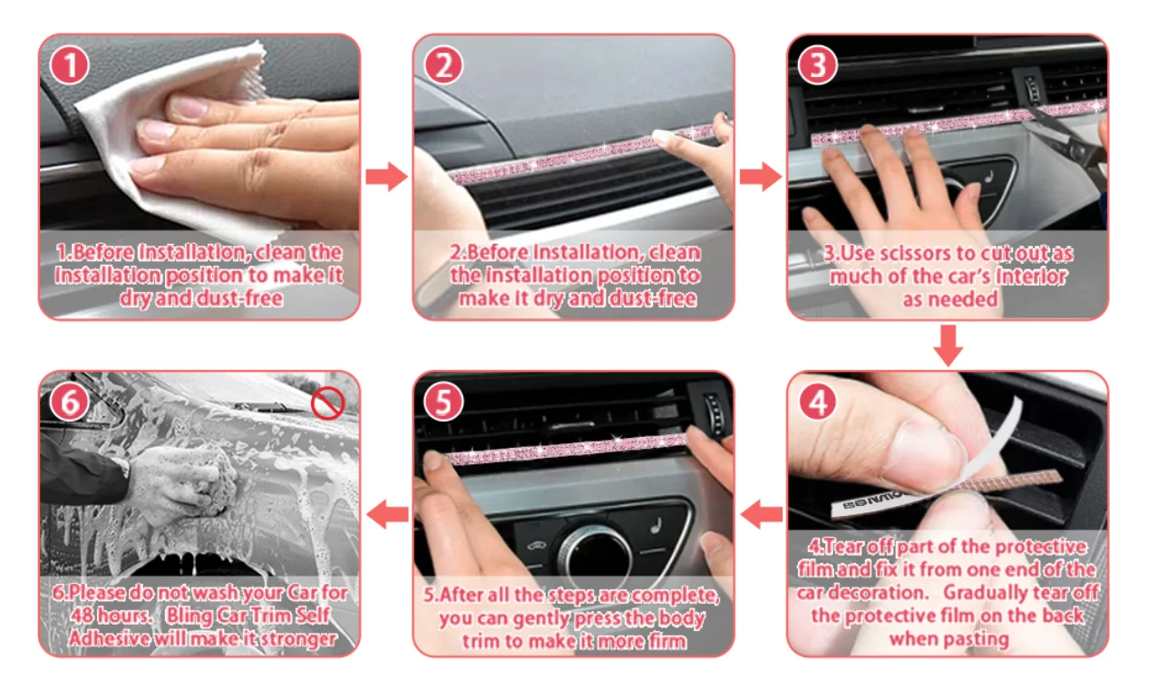 The installation process is flexible, and it can be easily cut into smaller pieces for your DIY needs. Before installation, ensure that the surface is dry and clean for optimal adhesion.car accessories pink/pink accessories for car /pink car bling/car stickers/pink car decorations/gift boxes/